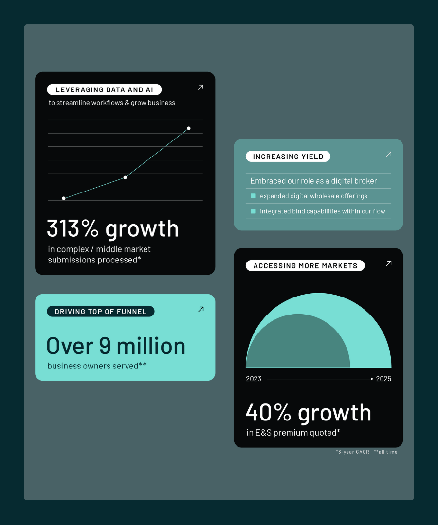 Looking ahead, we remain committed to expanding top-of-funnel demand and increasing yield. With a customized platform that supports everything from micro and small businesses to complex middle-market risks — across admitted and non-admitted lines — we are positioned to continue raising the bar as the premier digital broker for commercial insurance.
